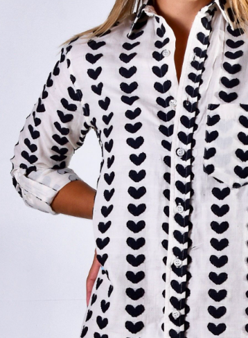 • White and black button down shirt with heart details